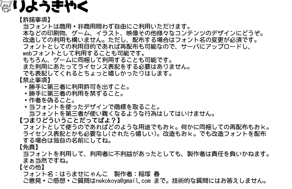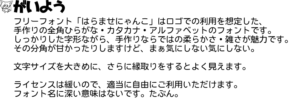 2015/12/05 おまけファイルとして角ばったひらがなを丸く変更した「はらませにゃんこ まるみ」を同梱しました。
